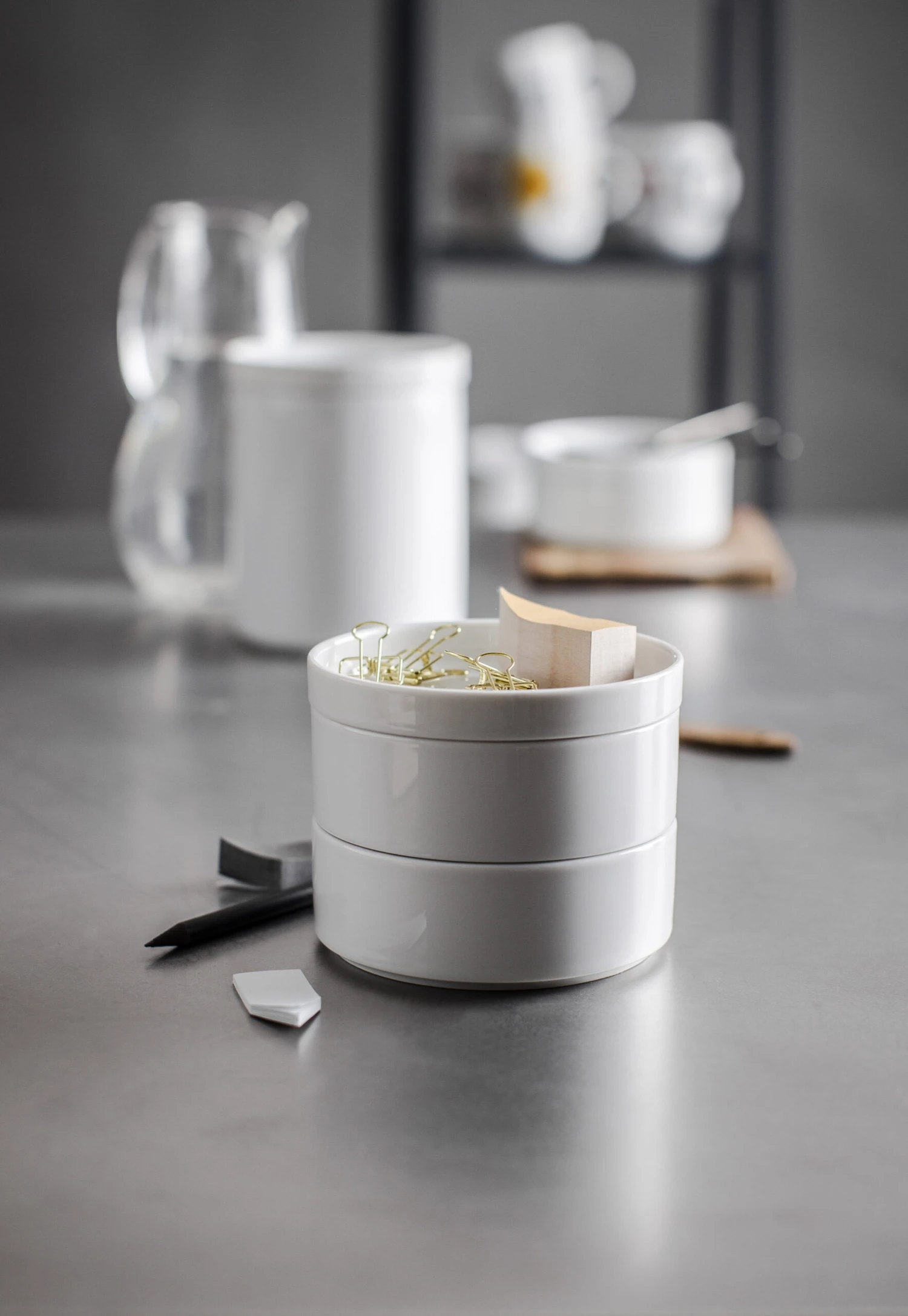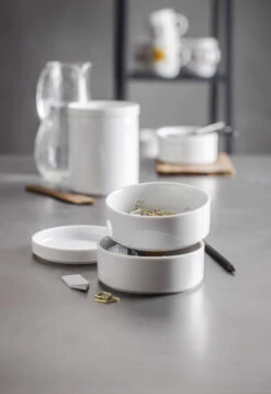 Die feine Kollektion aus kleinen und großen Porzellandosen mit Deckel bietet Raum für Kaffee, Gewürze, Müsli, Reis, getrocknete Früchte, Küchen- und Büroutensilien, selbstgemachte Cremes und andere Zutaten für ein Leben voller Geschmack, Fröhlichkeit und gutem Design.